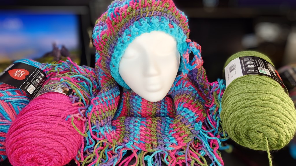 I have been working on a variety of multi-color hat and scarf sets using Tunisian crochet to get the most out of the color combinations, starting off with the box kit yarn experiment subjects of previous posts. I graduated to buying real yarn to make sets and decided to test the waters with my first ever listing on Etsy. I have a couple more sets I’m finishing up that I’ll be listing there soon as well. Bookmark the store to keep track of what new items drop!